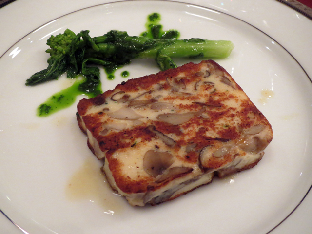 コースの最初は「色々な木の子のテリーヌ」で、キノコの弾力と、パテのフワフワした食感のバランスが絶妙だった。付け合せの野菜との相性もバッチリだ。