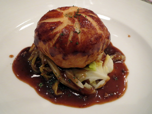 三品目は「鶉のパイ包み焼き」。いつもならばメインディッシュはこのお店にとって言わば「決め球」なのだが、変化球で来た。ウズラは玉子は食べても、肉を食べるのは珍しい。また、パイの中にはカレー味のライスも仕込んであり、ソースと合わせて様々な味と食感が交差した。