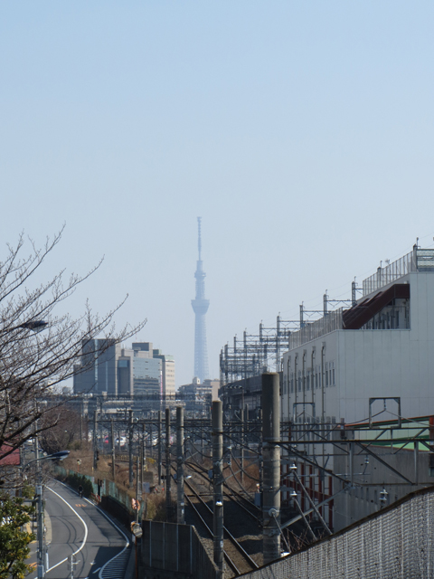 赤羽から王子を経て、田端運転所まで行ってみた。「もしかしたら」と思っていたのだ。途中にある「東京新幹線車両センター」付近の跨線橋からは、東京スカイツリーも見えた。