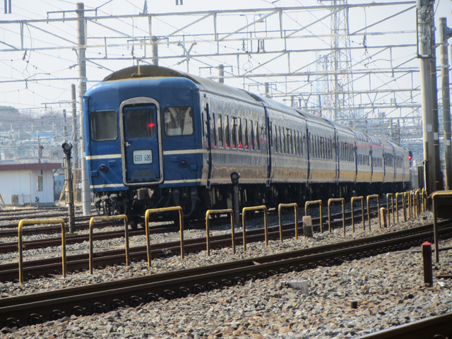 尾久駅あたりまで行ってみると、あった。まさに尾久駅の目の前に「あけぼの」の客車部分が停車している。先日ラストランを迎えた「あけぼの」のカーテンコールといったところだろう。尾久駅のホームでも、カメラを構えたファンの姿が大勢見られたし、線路脇にもカメラを構えた親子連れもいた。