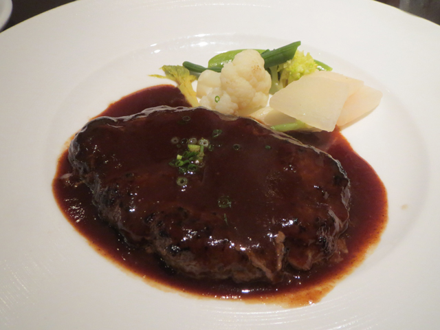 整骨院に行っていた妻が帰ってきてから、近所のフレンチにお昼ごはんを食べに行った。ランチは仙台牛内モモのハンバーグで、肉汁たっぷりのお肉に特製のソースが相性抜群だった。仮にダブルハンバーグなんてあったら、2枚余裕で食べられるほどだった。