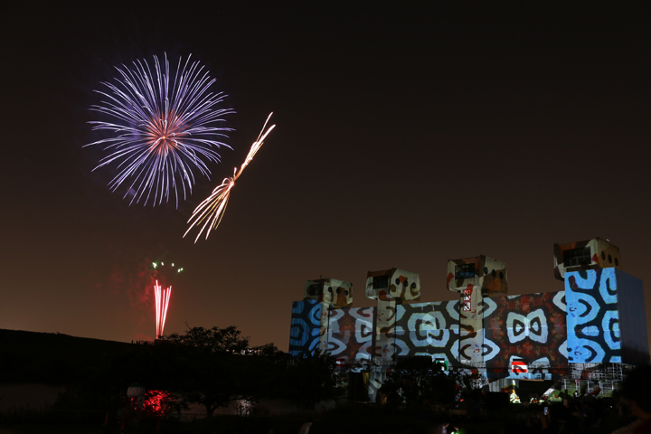 三脚は座ったときの目の高さで固定し、少しあおり気味に撮影した。また、花火の打ち上がる方向は毎回変わるので、そのつどカメラの向きを変えた。その際、いちいちファインダーを除く必要はなく、身体の向きは固定でバリアングルの向きを変えるだけで撮影できたのは便利だった。