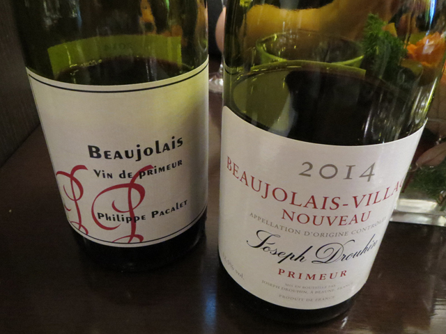 写真手前はメゾン・ジョセフ・ドルーアン。このお店は毎年ドルーアンを仕入れていている。いわば、このお店のボージョレの基準だ。芳醇な香りと口当たりの良さが特徴だった。