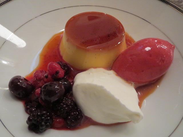 久しぶりなので、A/Bランチではなくプチコースにした。これがかなり正解だった。スモークサーモンのサラダ、玉葱のポタージュ、黒豚ミンチのパイ包み焼き、いずれも美味しかった。だがそれに輪をかけてデザートのプリンが絶品だった。
