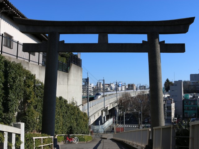 向かったのは、近所の赤羽八幡神社である。小高い丘の上にある神社で、真下(赤羽台トンネル)を新幹線と埼京線が通る珍しい神社だ。参拝をした後、撮影開始。鳥居越しのショットを狙えるのも、この神社の特徴。
