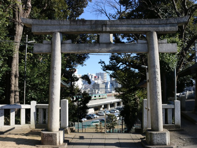 鳥居越しの新幹線
