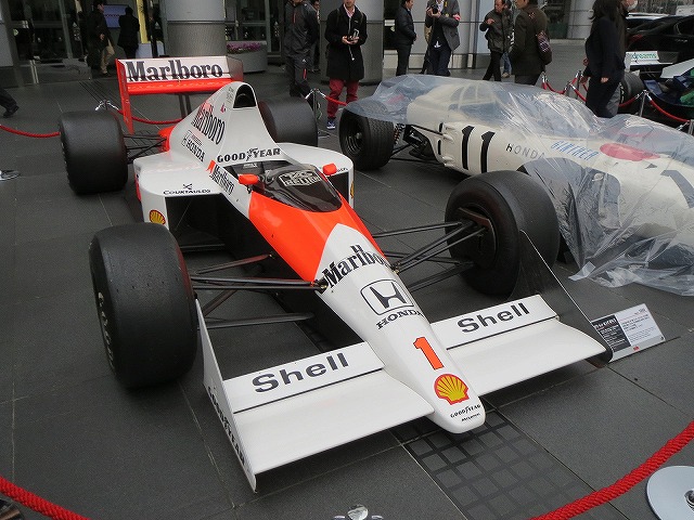 青山一丁目駅の地上に出ると、ちょうどホンダ青山本社の前。歴代のホンダF1マシンが並んでいて、壮観だった。一番馴染みのあるマルボロカラーのMP4/5がやはり一番かっこいい。